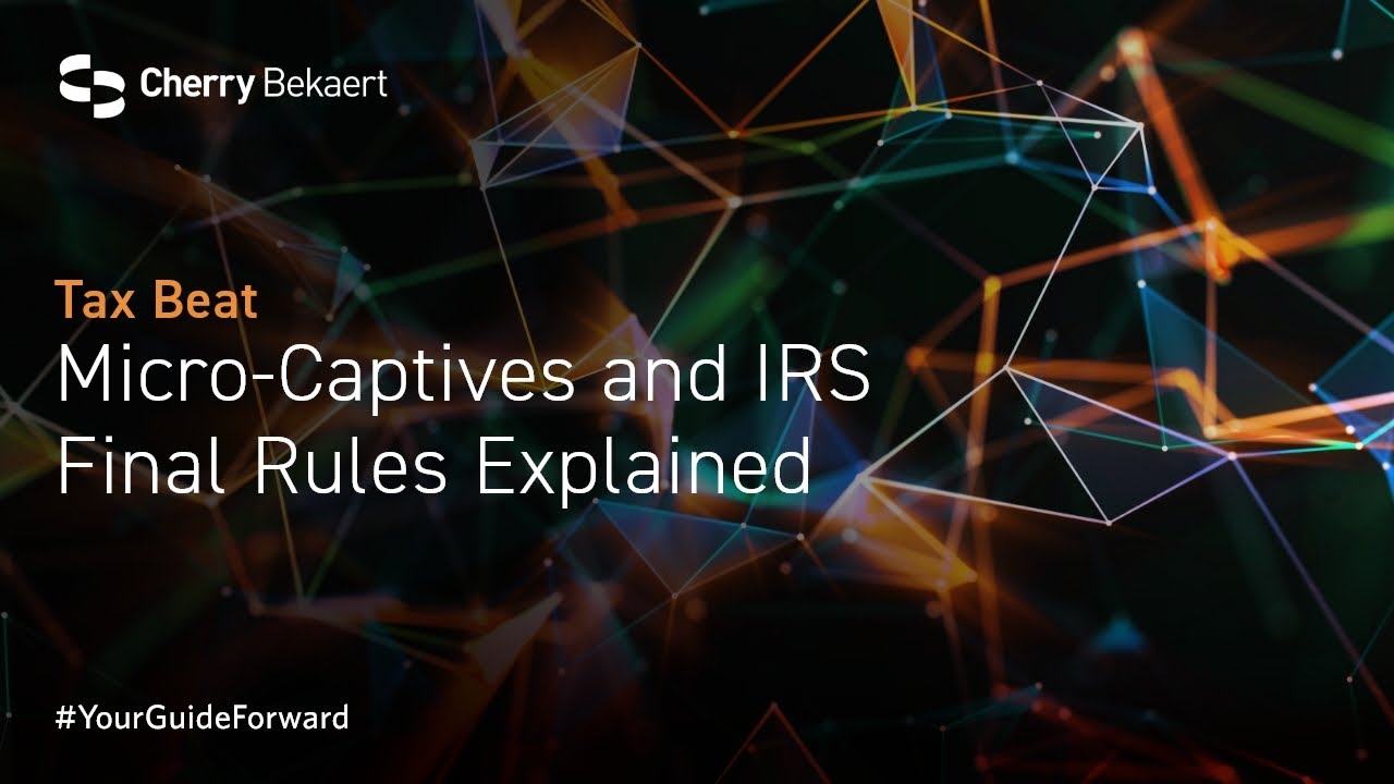 Cherry Bekaert’s Tax Services team and Insurance Industry professionals can leverage their deep industry experience to help you assess your current micro-captive transactions, review IRS risk exposure and assist with proper disclosures under the final regulations. Contact us today to discuss how we can support your tax planning and risk management needs.