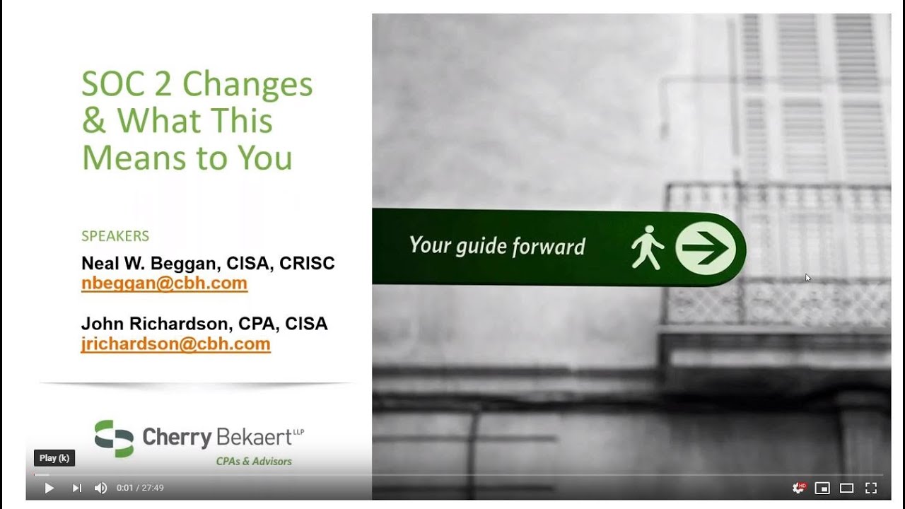 Whether you are pursuing your first SOC 2 or have been completing these audits for years, new changes to the framework take effect for any audits ending after December 15, 2018. In this brief webinar, the presenters addressed these changes and explained the impact it will have on upcoming audits.