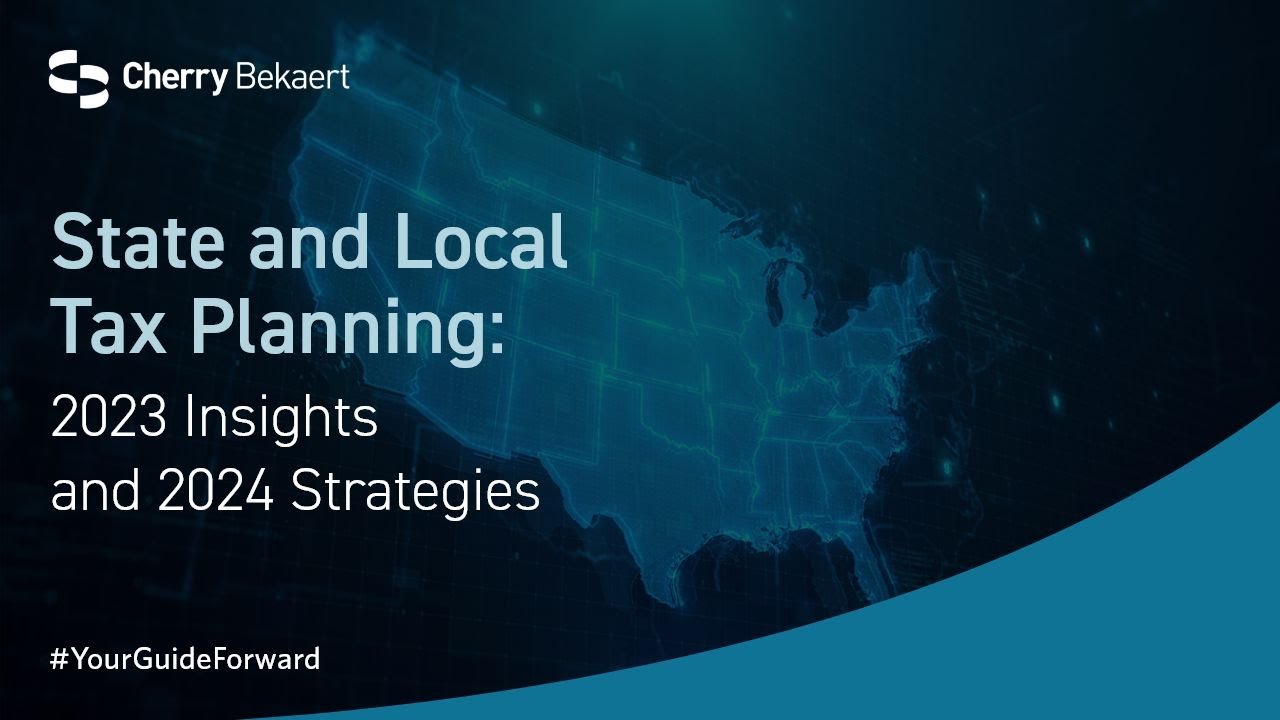 Cherry Bekaert’s State and Local Tax team dive into the dynamic world of state and local tax planning with our upcoming webinar. Gain valuable insights derived from real client experiences throughout 2023 and equip yourself with the knowledge needed to proactively plan for 2024. Cherry Bekaert’s State and Local Tax team will share practical lessons learned, industry trends and innovative strategies to help you optimize your tax position. Don’t miss this opportunity to stay ahead of the curve and enhance your tax planning proficiency.
